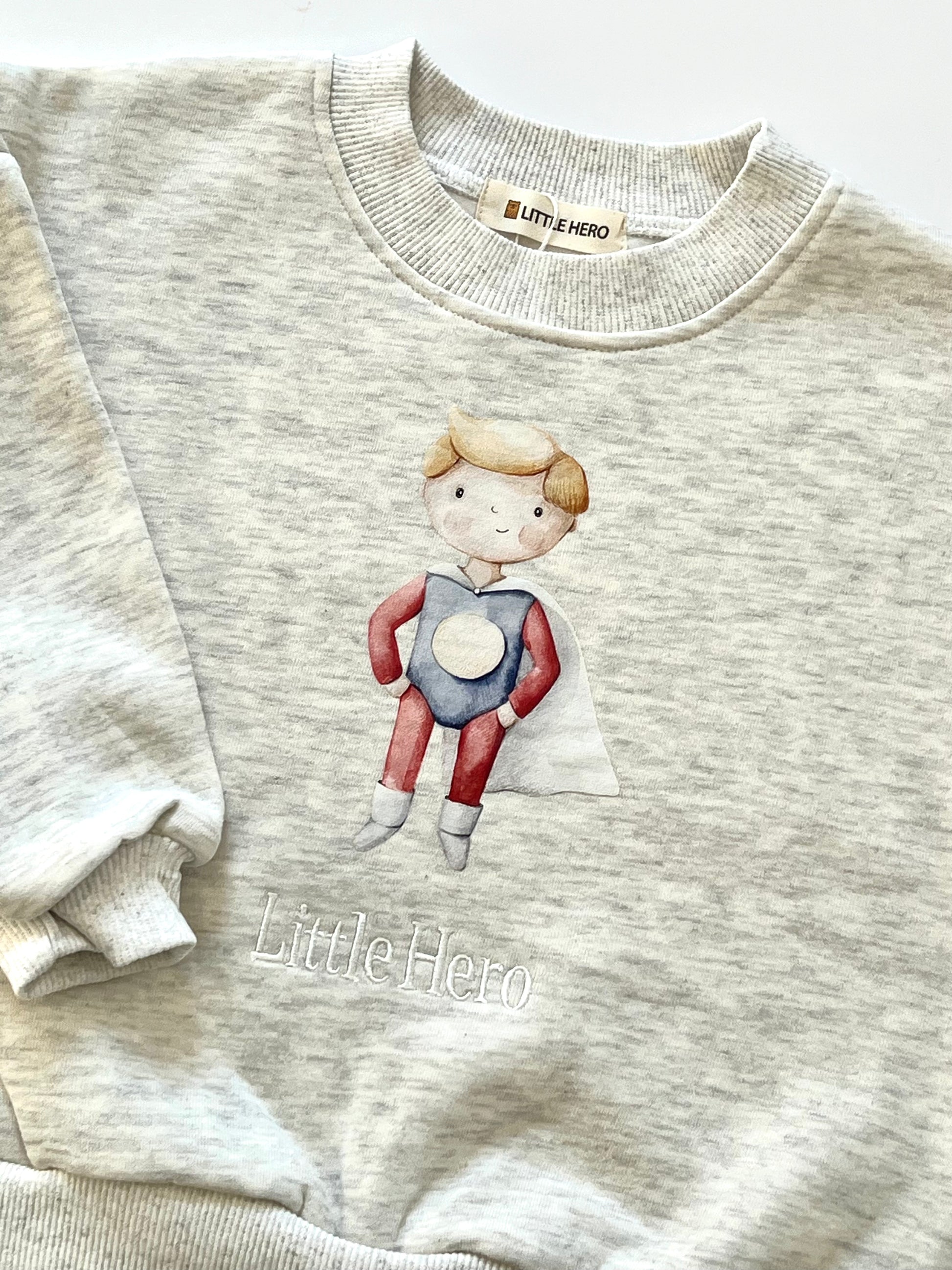 Elevate your little one's wardrobe with our "Little Hero" crew neck sweater for boys.